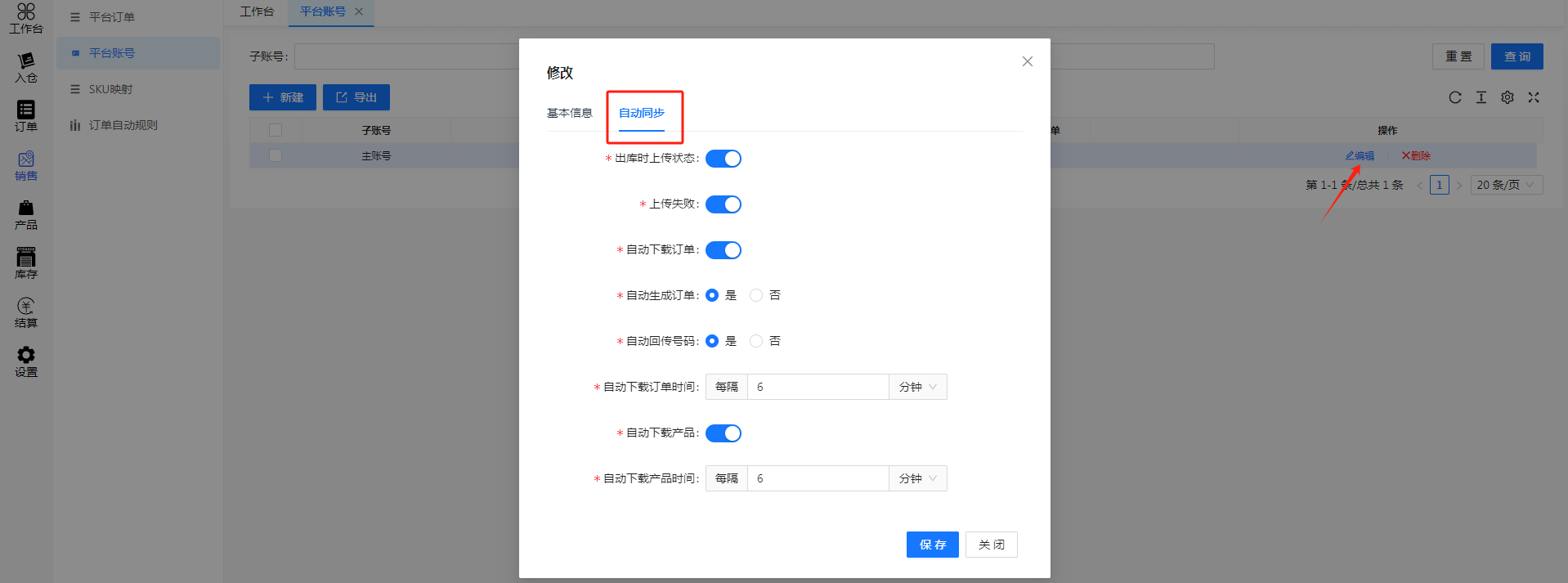 编辑账号自动同步