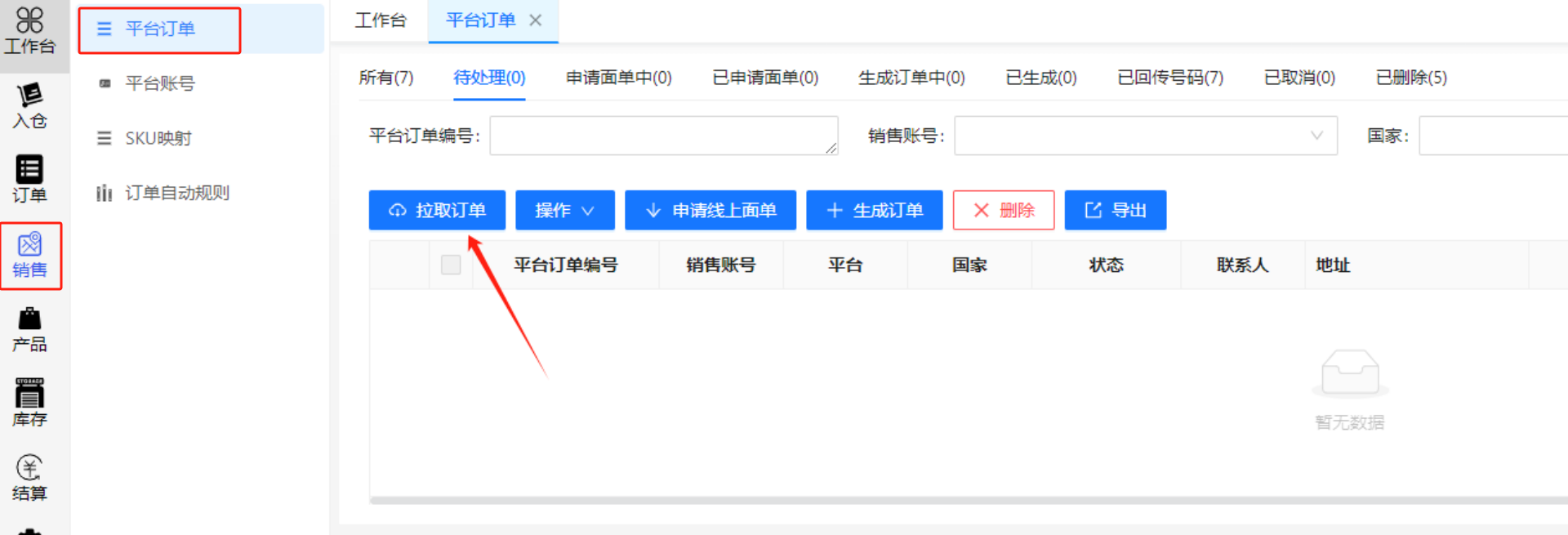 配置好账号后 通过自动同步或手动拉取同步NB订单到系统提交出库