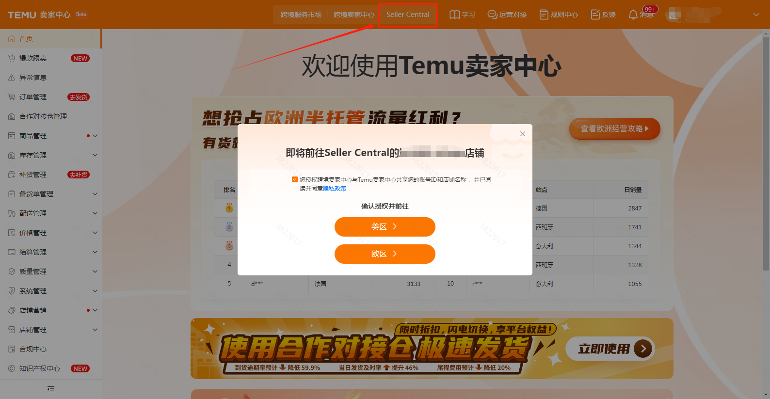 1.使用店铺主账号,打开Temu卖家店铺后台【seller central】获取access token授权。