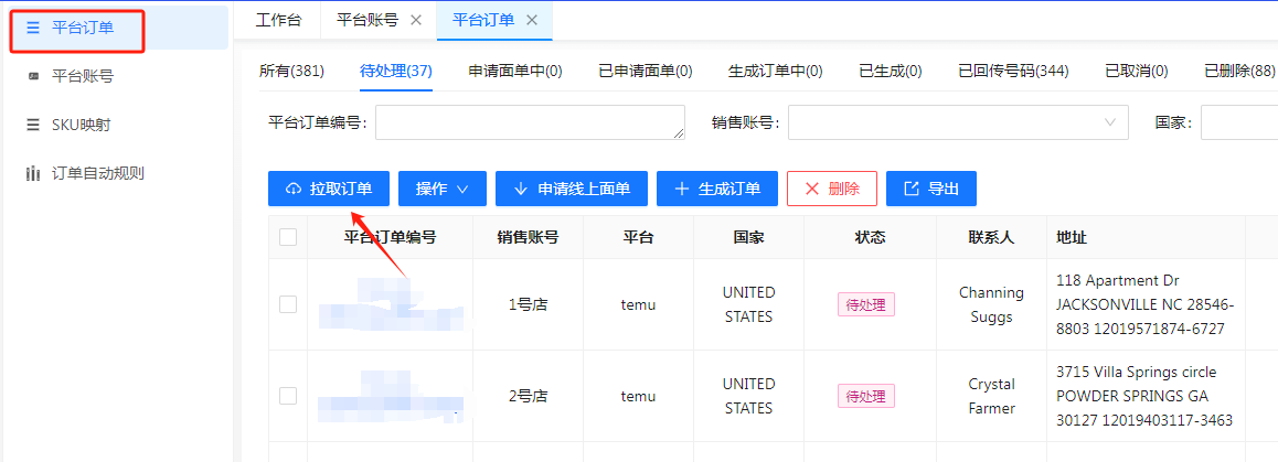 通过自动同步或拉取订单功能来同步temu订单到系统提交出库。