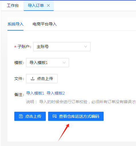 模板中的 运送方式编码 填写错误,应在 管理端-渠道-销售渠道-运送渠道 中查看对应渠道编码